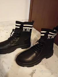 Stivaletti e scarponcini nuovi di ogni tipo taglia e misura. Quelli bianchi misura 43 quelli neri con scritta km misura 41 quelli stivaletti dietro 41 a destra stivaletti calzino 42
