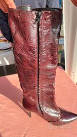 Stivale in pelle e camoscio marrone misura 37,suola e tomaia in vero cuoio,tacco 8 cm.interno in pelle.La parte in pelle è sulla punta e dietro.Made in Italy