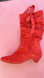 Stivale al ginocchio in camoscio color corallo/arancio,nuovo mai usato ,misura 37,tomaia in cuoio e suola in gomma,foderato internamente .