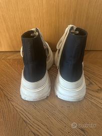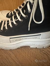 Alexander Mc Queen Tread slick High top Tela nera Suola chunky bianca Tg 41