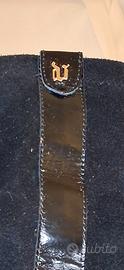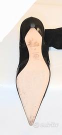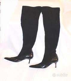Eleganti stivali alti in camoscio nero con dettagli in vernice e tacco 4 cm - Materiale: camoscio e vernice. - Design a punta. - Tacco sottile.