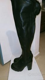 Stivale alto sintetico con cerniera e tacco medio