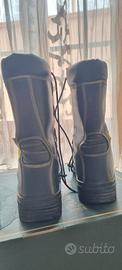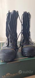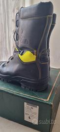 Stivale mod. "C", con tomaia in pelle fiore idrorepellente ed ignifuga di colore nero + reflex giallo. Fodera in membrana impermeabile e traspirante. Puntale in acciaio o in Composit® e soletta antiperforazione tessile in Kevlar. Chiusura mediante lacci ignifughi passanti in occhielli e dispositivo di sfilamento rapido a cerniera. Suola in gomma antiolio, antistatica e antiscivolo. Lavorazione "Ago".