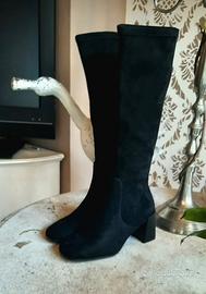 Stivale in camoscio nero con cerniere interna.