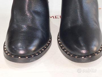 Stivali Rinascimento n.37 neri con borchie completo di scatola originale Vendo stivali Rinascimento originali, numero 37, colore nero, in ecopelle. Modello con tacco interno rialzato e interno felpato, comodi e ideali per l’inverno. Borchie dorate su tutto lo stivale per uno stile grintoso. In buone condizioni. 📦 Spedizione a carico dell’acquirente 🤝 Ritiro a mano disponibile