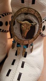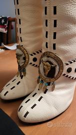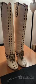 Bellissimo stivale in pelle Giuseppe Zanotti Design originale, con cuciture colore testa di moro, fibia in cavallino con piume. Tacco 12 a spillo in legno. Con dustbag e scatola originali. Usati poche volte. Piccolissimi segni di usura, nel complesso in ottimo stato. numero 40. consegna a mano zona Como