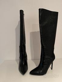 Stivale in pelle, nero con tacco alto e altezza sotto il ginocchio