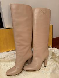 Stivali alti Fendi Originali in pregiata pelle di vitello beige cipria, numero 40, nuovi e mai indossati.