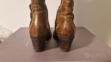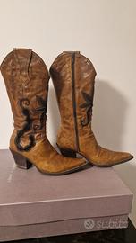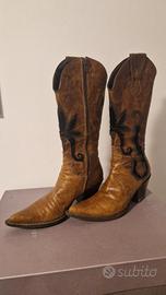 Stivale Janet & Janet da donna, stile cowgirl, taglia n. 35. Usati pochissime volte, con cinghie rimovibili a seconda dei propri gusti. Colore cognac, testa di moro. Si accettano offerte.