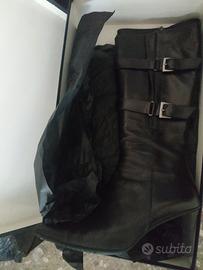 Stivale Melluso con tacco sottile e fibie laterali. Zip di chiusura.