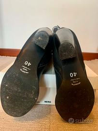 Splendido stivale nero in pelle (lavorazione artigianale ), usato poco , con tacco. Le fibbie e l’inserto elasticizzato posizionati dietro permettono la regolazione e quindi di essere indossati anche da polpacci importanti . Altezza tacco : cm 9 Altezza del gambale :cm 36 Altezza totale : cm 47 Larghezza gambale 19 cm Vendo con la propria scatola originale Pagati euro 169,00 Possibilita di spedizione o consegna a mano nella regione Veneto
