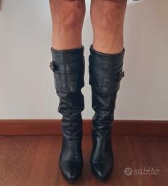 Stivale pelle nero, marca Janet&Janet, numero 38 e mezzo, tacco 10 cm, gambale 37 cm e mezzo ( dal tallone ).