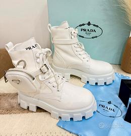 Eleganti stivali Prada in vernice bianca, perfetti per completare ogni outfit.