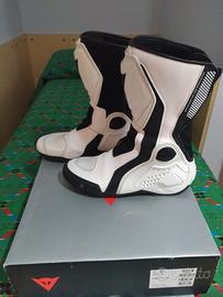 Stivali tecnici in pelle DAINESE con inserti in banda elastica posteriore per maggiore flessibilità del piede. Cerniera posteriore per eliminazione del fastidio sul malleolo e facile chiusura, velcro per regolazione polpaccio per poterli indossare anche con il jeans.