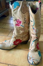 Stivale texano Gianni Barbato beige a fiori
