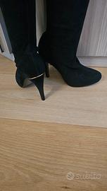 stivale fino al ginocchio in tessuto .tacco 9 cm con inserto colo oro sul tacco