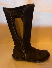 Una famosa calzatura di produzione tedesca Color caffè espresso in pelle vintage in vacchetta.