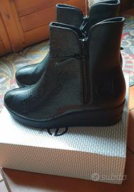 vendo stivaletti marca Agile di Rucoline, pelle nera, effetto pitonato. con cerniere plateau: 2 cm zeppa: 4,5 cm taglia:41 pianta stretta. mai usati.