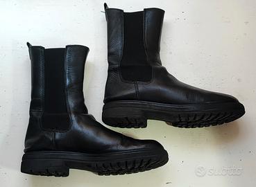 Stivaletti anfibi in pelle,N39 usati sempre con cura con quel tocco di "vissuto" che lì rende unici, facilmente calzabili con le bande elastiche laterali, comodi e caldi con battistrada alto e antiscivolo.