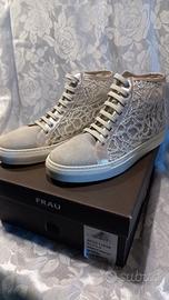 bellissimi stivaletti primaverili, con tomaia in rete e lustrini argentati, rifinitura in pelle e camoscio. suola in gomma