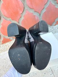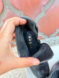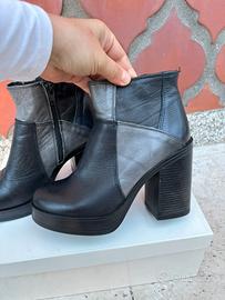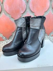 Stivaletti di Barca in vera pelle, neri e grigi con cerniera, tacco+plateau, molto comodi, numero 36