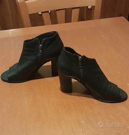 Stivaletti da donna neri in pelle con apertura sulla punta e chiusura laterale a zip n.37 nuovissimi mancante scatola
