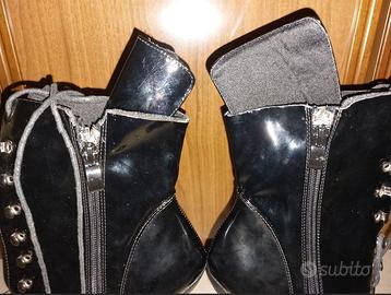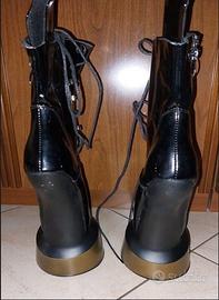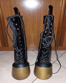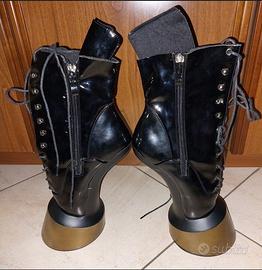 Gli stivaletti Pony sono un accessorio per abbigliamento Fetish, o giochi di ruolo BDSM ponyplay, Il particolare dello zoccolo conferiscono alla scarpa un carattere unico. (Può essere difficile camminarci ci vuole un pò di pratica) Nota: Le cerniere sono state riparate perchè si sono rotte,(consiglio di lasciarle chiuse e usare solo i lacci) la parte superiore e stata rimossa come si vede dalle foto.. Altezza della piattaforma: circa 7 cm Chiusura: Allacciatura e cerniera interna Taglia 42 No consegna a mano Contattatemi per informazioni