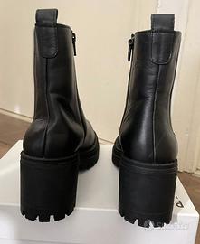 Bellissimi stivaletti CAFÉ NOIR modello “Beatles” n. 38 in morbida pelle nera con elastico nascosto, di super tendenza, suola carrarmato con tacco da 6,5 cm, comodissimi, indossati UNA (1) volta pari al nuovo. Pagati esattamente € 149.