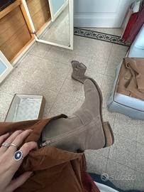 Stivaletti eleganti ma allo stesso tempo super versatili • Colore: beige/tortora • Numero: 39 • Modello con zip laterale (facili da indossare) e doppia fibbia decorativa • Tacco basso in legno, comodi per tutti i giorni Perfetti sia con jeans che con vestiti per un look casual-chic