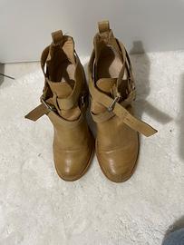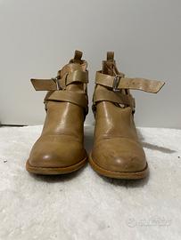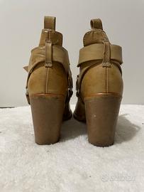 Stivaletti beige tronchetto con cinturino, tacco 9
