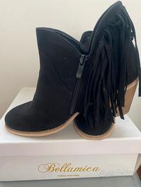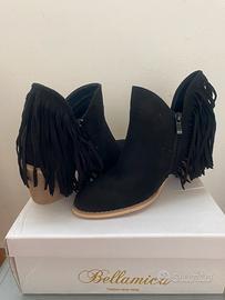 Stivaletti alla moda con dettagli sfrangiati. - Materiale scamosciato. - Zip laterale per facilitare la calzata. - Suola in contrasto.