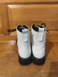 Vendo stivaletti bianchi CaféNoir, numero 36, modello tipo anfibio con suola alta.