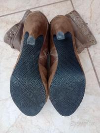 Stivaletti bicolore Luca Stefani, pelle e camoscio, color tortora, con borchiette dorate, tacco 10 cm, indossati due volte appena.