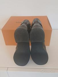 Stivaletti Biker Louis Vuitton modello Wonderland classici in monogram con pelle nera e hardware oro.