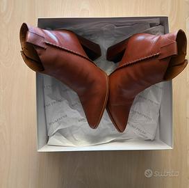 Vendo splendidi stivaletti firmati Bruno Premi color cuoio/cannella, realizzati in pelle di alta qualità (materiale “Firenze”). Design raffinato con punta affusolata e tacco alto stabile, perfetti per slanciare la figura senza rinunciare al comfort. 🔸 Taglia: 37 🔸 Condizioni: come nuovi (mai indossati) 🔸 Chiusura con zip laterale 🔸 Colore caldo e versatile, ideale per ogni stagione Perfetti sia per outfit eleganti che casual chic 🤎 📍 Consegna a mano o spedizione disponibile Scrivimi in privato per info o altre foto!