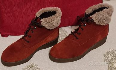 Polacchine in camoscio e pelle, pelliccia alle caviglie in pura lana, interno in pelle, plantari felpati. Suole in gomma come nuove, così pure la scarpa. N°37
