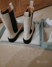 Stivaletti Manfield nuovi mai usati in pelle color beige chiaro / bianco sporco. Pelle liscia.