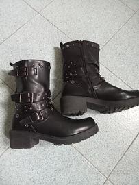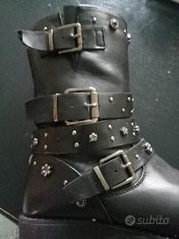 stivaletti vintage comodi con cerniera laterale, piccole imperfezioni sulla punta e due borchiette mancanti, tacco 5 cm suola di gomma spessa a carrarmato anti scivolo molto belli indossati.