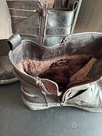 Vendo stivaletti colore marrone scuro con imbottitura in pelliccia numero 38 con apertura con cerniera, come da immagini. Usate. Non spedisco.