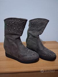 eleganti stivaletti con strass, cerniera dietro,rialzo interno,non.37,colore marrone