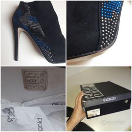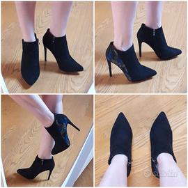 scarpe tacchi spillo stilettos stivali decolleté decoltè grosso largo block heel blocco blocchetto camoscio pelle tacchi tronchetti donna ankle boots artigianale made in italy brillantini zip blue china abbigliamento goldenphoenix90