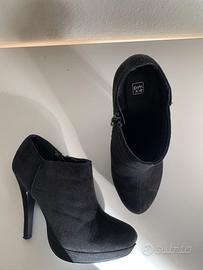 Stivaletti con tacco alto, alla caviglia, neri, in similpelle scamosciato, con chiusura a zip, numero / taglia 36.