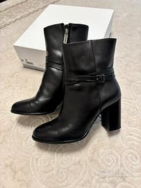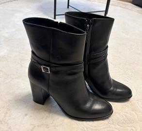 Eleganti stivaletti firmati Pollini, realizzati in vera pelle di alta qualità. Punta arrotondata e tacco slanciato per un look raffinato e femminile, perfetti sia per il giorno che per la sera.