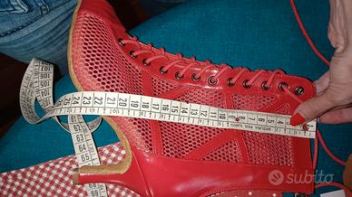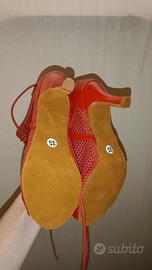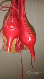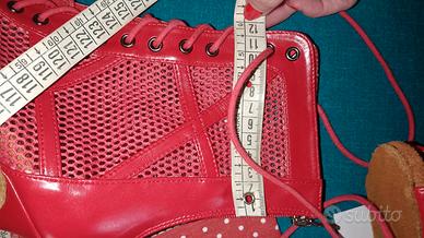 stivaletti in pelle rossa, stringati, open toe, chiusa lampo dietro
