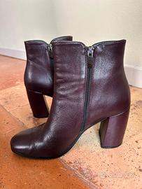 Stivaletti da donna bordeaux, con tacco e zip laterale, made in Italy.