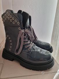 Stivaletti da donna, colore grigio/lucido con borchie e lacci, NR.39
