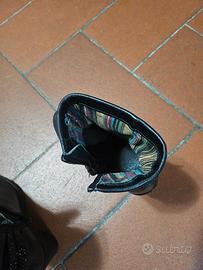 Stivaletti da donna alla moda di colore nero in pelle con chiusura a cerniera. Resistentissimi, inpermeabili, con fodera interna termica. Da abbinare con un abbigliamento prettamente casual ma non dispiacciono nemmeno con un abbigliamento che si accosta e identifica piu' con il classico. Adatto anche a tutte le eta', e a chi si sente sempre giovane ed e' ambizioso di indossare capi di qualita' e che fanno figura in ogni occasione. Numero di calzatura 38, molto morbidi, si indossano con facilita' scivolando sul piede come si indossa una pantofola quando siamo in ambiente domestico. Vero affare, visto anche il prezzo che si puo' trattare e indirizzato a persone che cercano un articolo di carattere e non si lasciano sfuggire le buone occasioni!!!!!. Spedizione celere in appena due giorni.