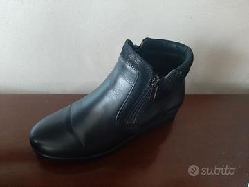Stivaletti da donna in pelle con zeppa e doppia zip, neri, misura 37 (EU).