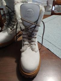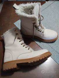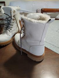 Stivaletti bianchi avorio in ottimo stato,suola a cararmato, pelliccia sintetica, taglia 38, marchio Caimano