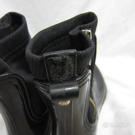 Stivaletti da pioggia Donna modello Odette di Tommy Hilfiger Mis. 40. Si tratta di uno stivaletto chelsea impermeabile, realizzato in Pvc con finitura lucida e caratterizzato da una pratica chiusura lampo laterale. Le condizioni generali sono buone, suole in buono stato, segni d'uso come da foto. Misura 40. Senza scatola.